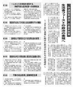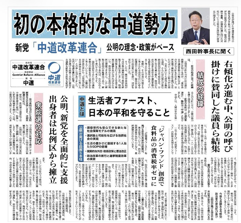 公明党と立憲民主党の一部などが合流し、日本初の本道な中道勢力が誕生しました。右傾化やポピュリズムが進む今、対立ではなく「対話と合意」の政治を目指します。