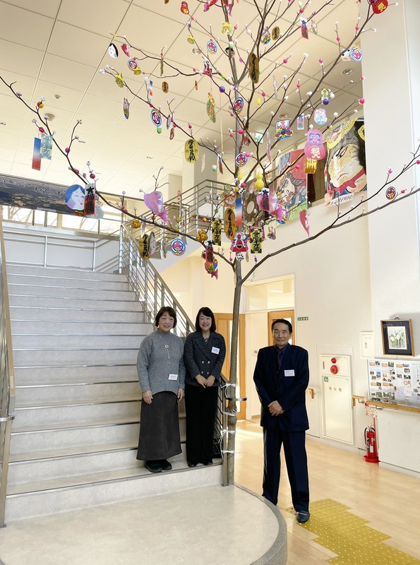 地域の新春交流会へ。根白石市民センターにて伝統飾り「だんごさし」がお出迎え 水木の枝に紅白の団子を挿し、稲穂に見立てて飾る「だんごさし」根白石の大切な文化です。色鮮やかな団子木が会場を華やかに彩っていました✨