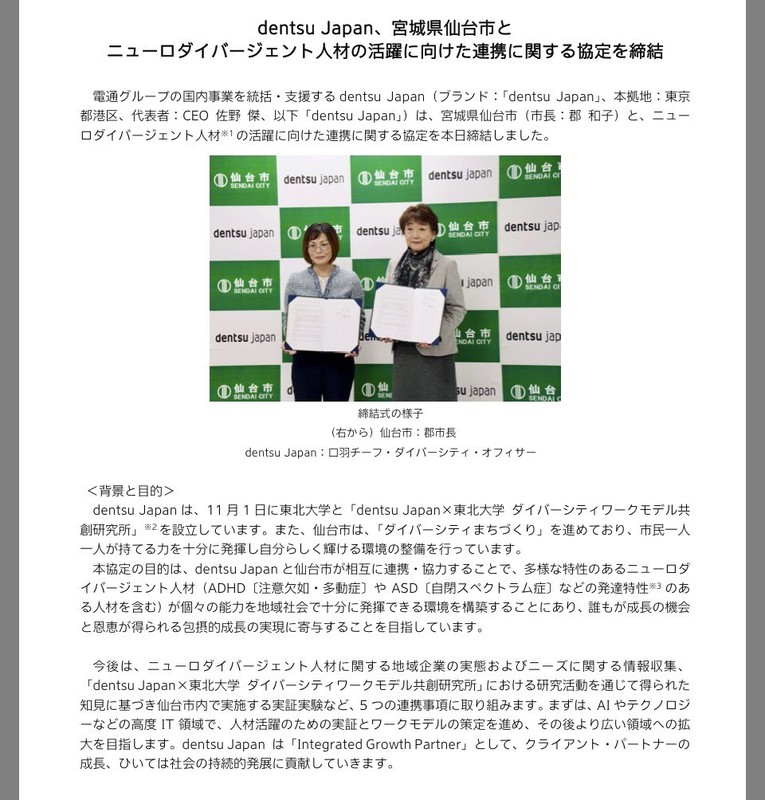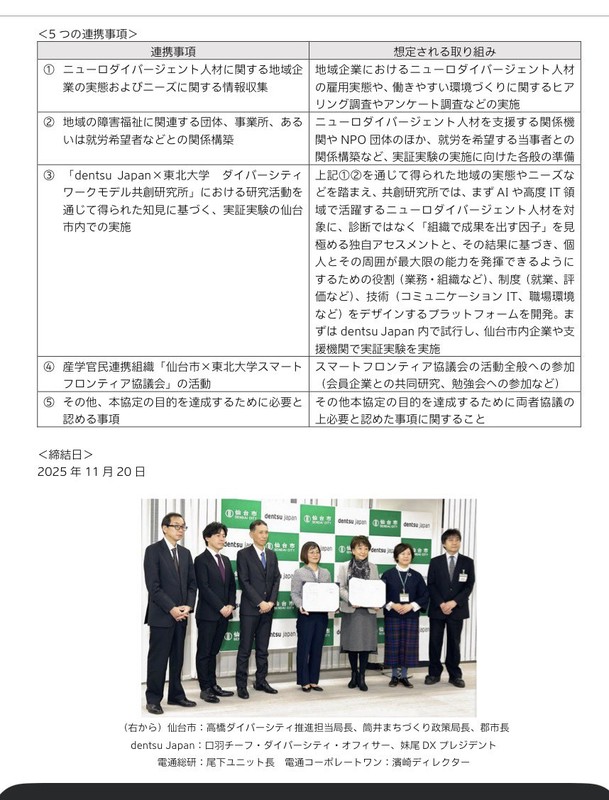 【公明党からの中道改革連合比例区立候補予定者!】 東北比例ブロックは庄子賢一議員 【全国初!dentsu Japan × 仙台市が連携協定を締結!支援団体の皆様と勉強会】 ADHDやASDなどの発達特性を持つ「ニューロダイバージェント人材」が、その才能を地域社会で発揮できる環境づくりがスタートします。